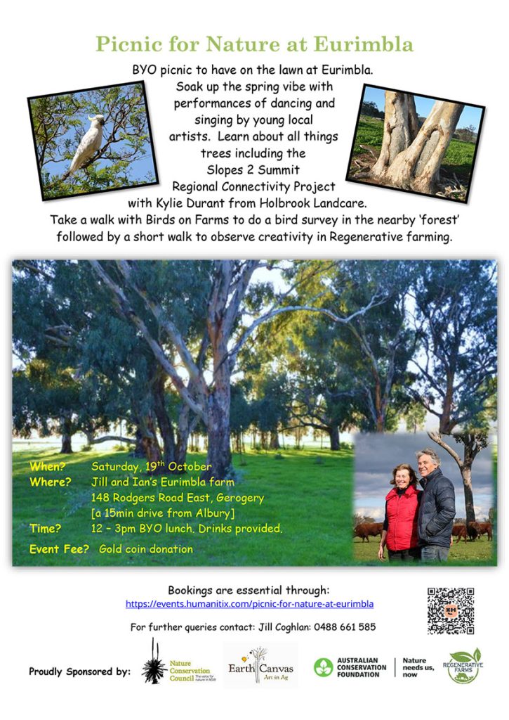 Bookings are essential through: events.humanitix.com/picnic-for-nature-at-eurimbla